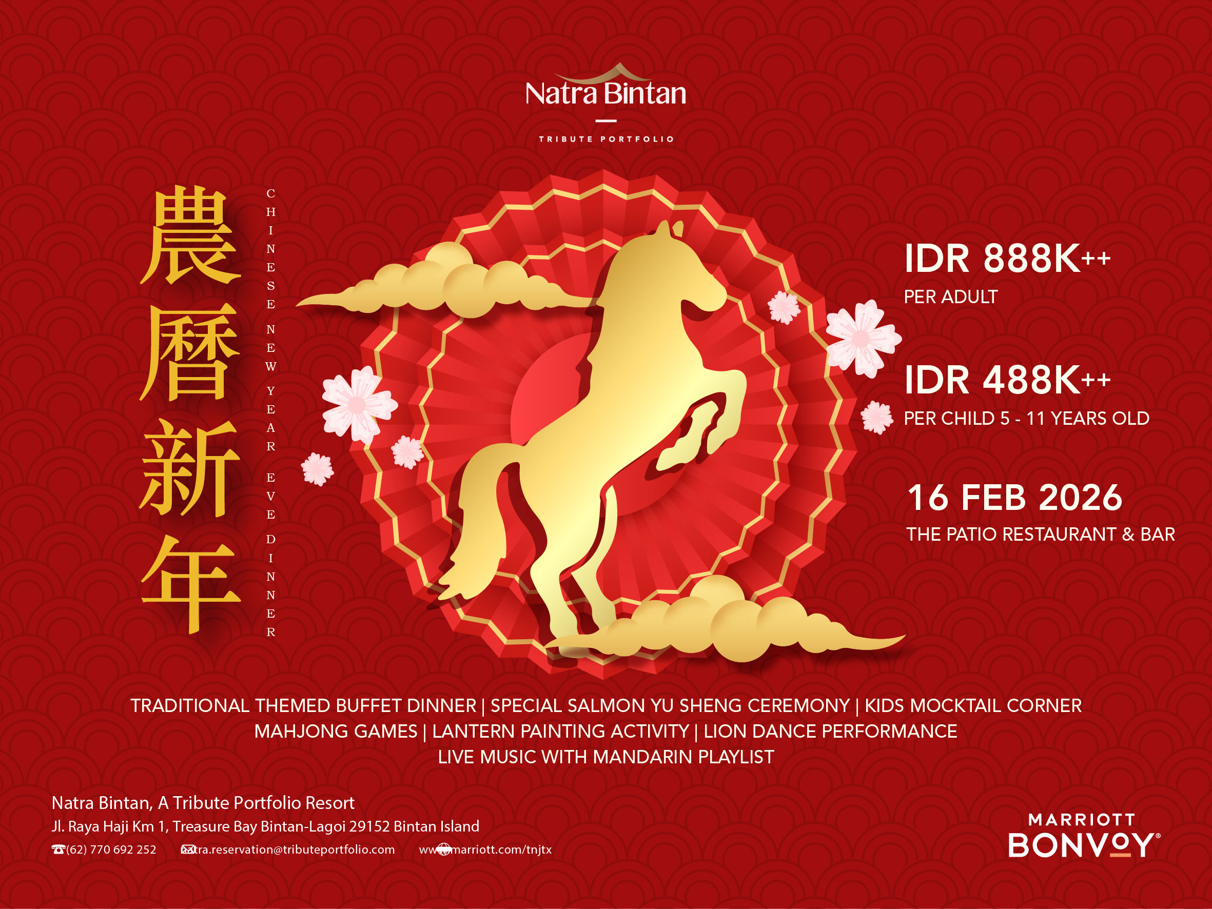 Reserve yours now and indulge in a festive Chinese New Year–themed buffet dinner, complemented by vibrant entertainment in the heart of Bintan Island!